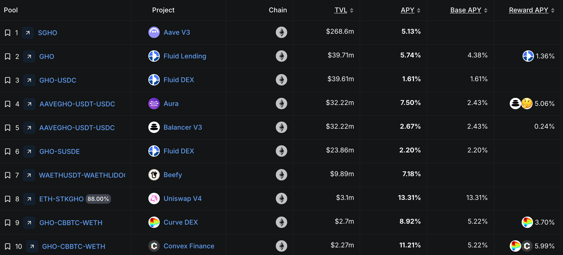 | Fluid | GHO/USDC | $42.22M |