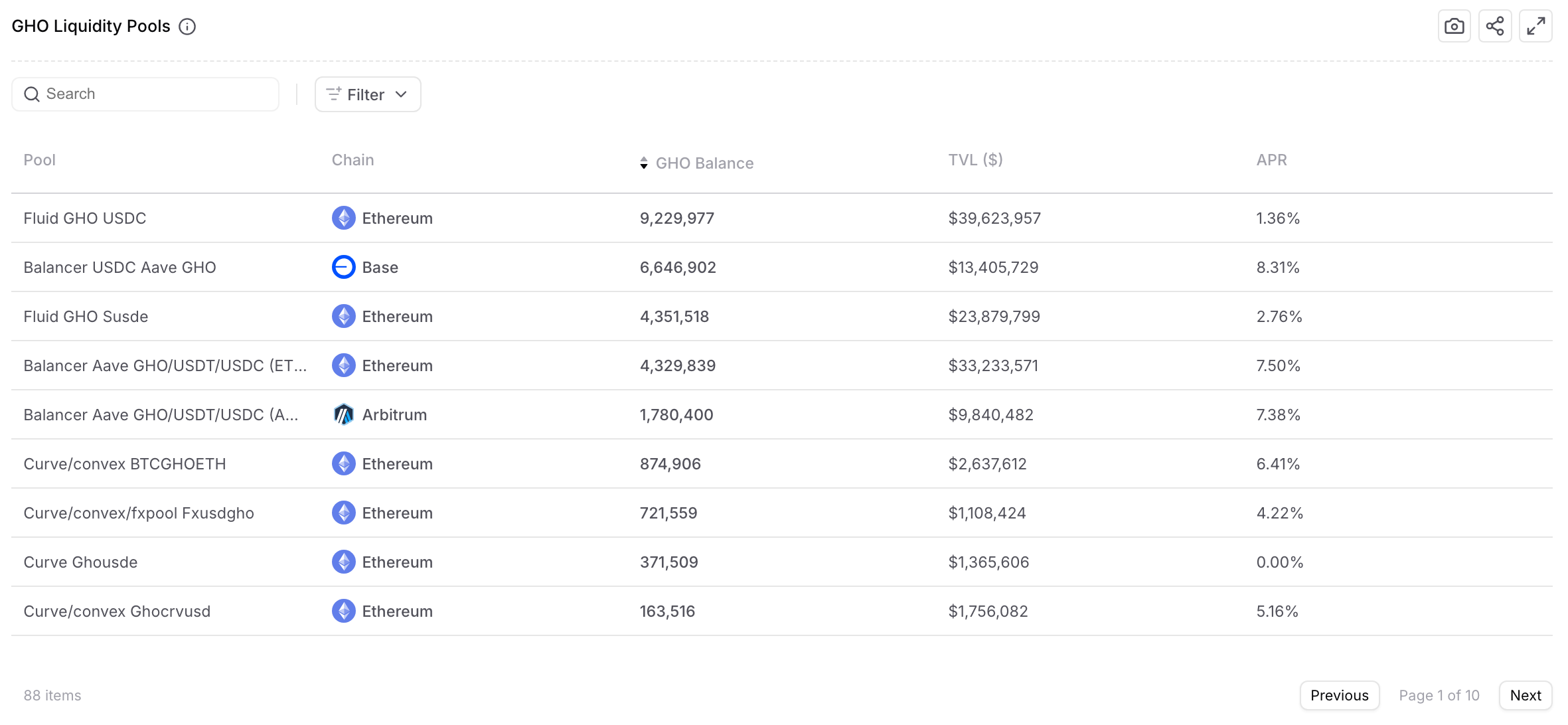 | Base | Balancer | USDC/GHO | $12.82M |
