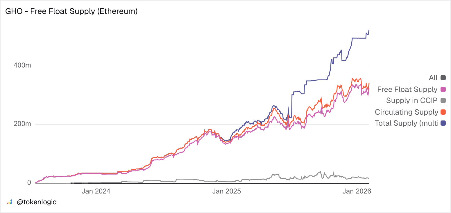 | Total GHO Supply | 522.3M |